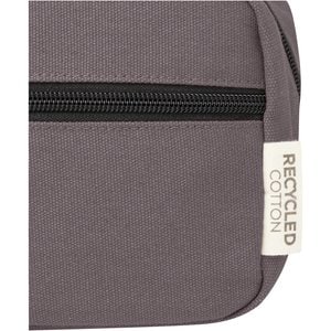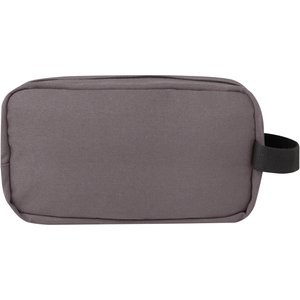 Toilettaske i GRS certificeret genvundet llærred og GRS certificeret RPET foring. Den har en forlomme med lynlås og et hovedrum med lynlås og organisatoriske lommer samt en behagelig webbing. Den dekorative metalplade kan få et logo til at skinne gennem sin diskrete og mat finish. Kapacitet: 3,5 liter.