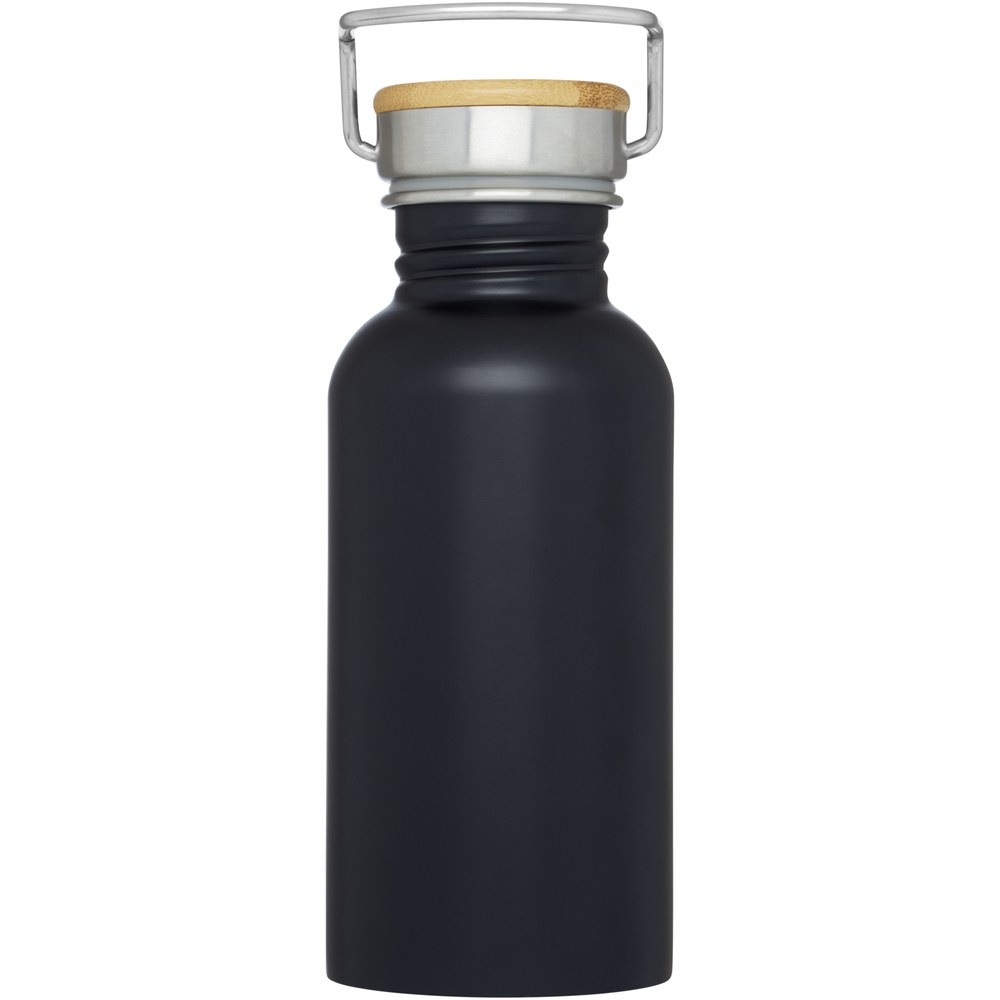 Enkeltvægget flaske i rustfrit stål med skruelåg. Låget har en bambustop samt et håndtag, der gør det let at bære. Rumindholdet er 550 ml. Leveres i en Avenue-gaveæske.